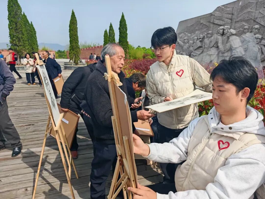 清明节前夕,“赓续·2025·清明祭英烈”暨百位烈士画像捐赠活动在江西省于都县烈士纪念园纪念广场举行。安徽师范大学美术学院青年志愿者们积极参与到此次烈士画像绘制中,以细腻笔触还原了烈士的容貌,让英雄形象跨越时空,与后人“重逢”。青年志愿者们还联合芜湖市师范学校附属小学的少先队员赴市烈士陵园开展“为烈士碑文描金”活动。而这是这支青年志愿者团队发挥专业所长,缅怀英烈、关爱烈属、传承精神的缩影。
