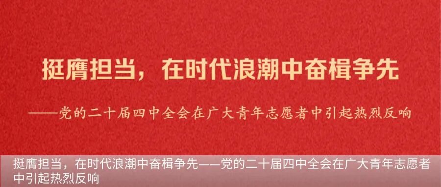 党的二十届四中全会于10月20日至23日在北京举行,会议审议通过了《中共中央关于制定国民经济和社会发展第十五个五年规划的建议》。全会的召开在广大西部计划和研究生支教团志愿者中引起热烈反响,大家热切表达对习近平总书记的衷心拥护和深切爱戴,纷纷表示将立足岗位、勇担使命,到祖国和人民最需要的地方发光发热,在强国建设、民族复兴新征程中书写崭新的青春篇章。