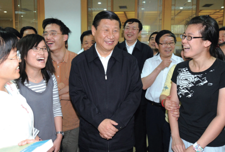 2009年5月6日,习近平在中央民族大学考察,与正在图书馆阅览室自习的各族同学亲切交流。