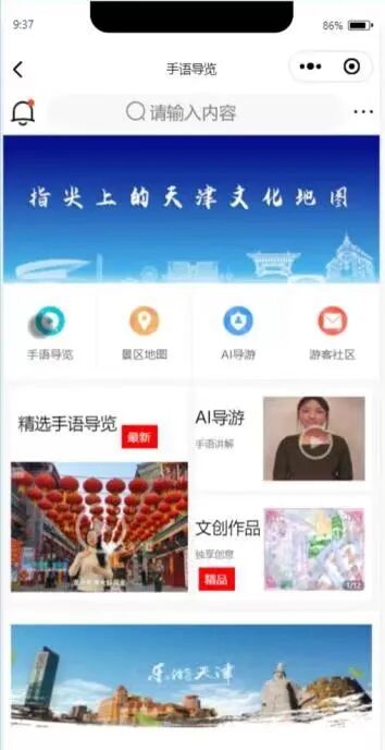 天津理工大学“从‘指尖’到‘心间’——指尖上的天津文化地图”志愿服务项目志愿者参与开发的手语导览系统界面??