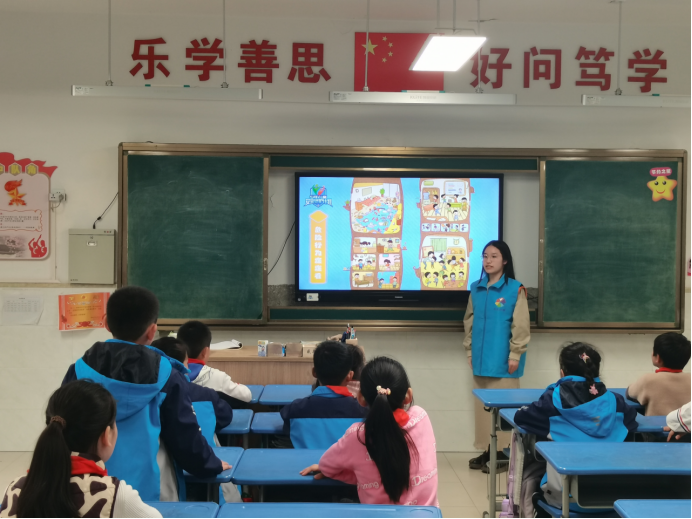 志愿者杜思澄的《危险的事情我不做》以及志愿者卞明宇的《厨房和客厅中的危险》,吸引着同学们的目光。他们巧用趣味故事与鲜活案例,站在孩子们纯真的视角,将那些隐匿在日常生活中的危险场景一一拆解。同学们沉浸其中,在互动交流里精准识别危险行为,领悟避险关键,安全意识的种子就此深植心间。