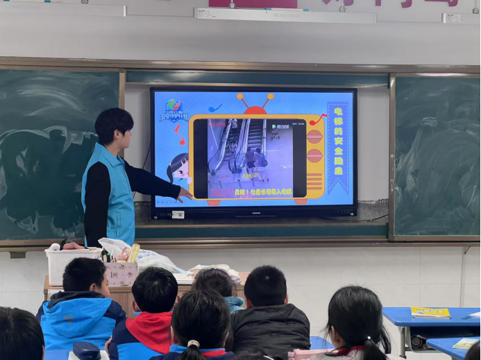 志愿者赵泽辰的《安全乘梯与文明出行》课程独具匠心。逼真的《电梯的安全隐患》短片瞬间抓住孩子们好奇心,直观展现电梯风险。随后,志愿者通过通俗易懂的扶梯原理讲解,搭配生活实例与图示,让知识不再深奥。在亲手制作模型扶梯的实践环节,孩子们兴致勃勃,在动手操作中吃透乘梯知识,锻炼创新能力,让安全教育入脑入心。
