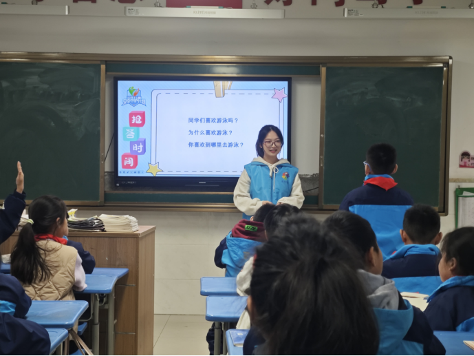 《安全运动才快乐》的课堂上,志愿者张蓓蓓化身活力满满的“运动小导师”,与孩子们热烈探讨运动方法,瞬间点燃课堂氛围。志愿者们亲身示范标准运动姿势,带领孩子们跟随欢快节奏学习热身操。孩子们全情投入,目光专注,每一个动作都力求精准到位,在实践中深刻体会热身运动对预防伤害的重要意义。孩子们既舒展了筋骨,又增长了知识。